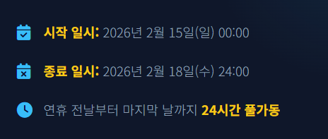 • 시작 일시: 2026년 2월 15일(일) 00:00부터