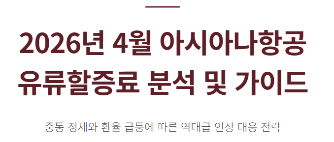 2026년 4월 아시아나항공 유류할증료는 유가와 환율의 영향으로 전례 없는 수준으로 올랐습니다.