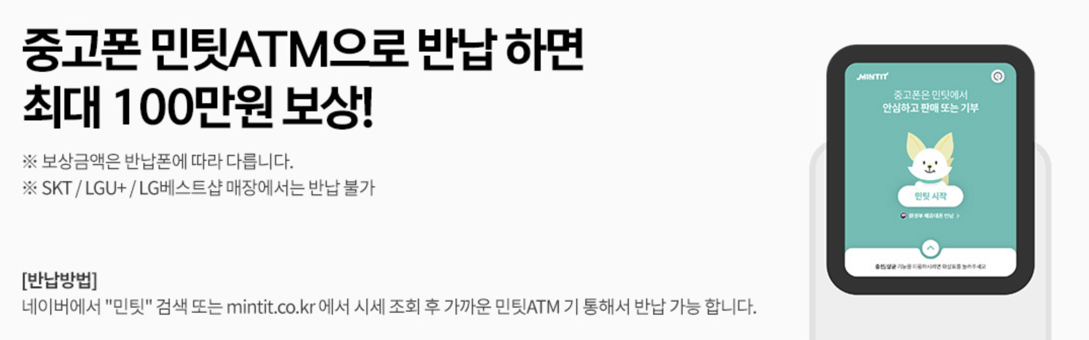 중고폰을 민팃 ATM으로 반납하면 상태에 따라 최대 100만 원까지 보상하니 이 혜택도 참고하시고 이용하시면 아이폰 16을 더욱더 저렴하게 구매를 하실 수 있어요!!