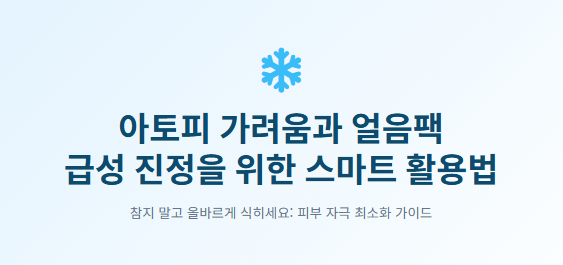 아토피 관리는 증상을 완화하는 것뿐만 아니라, 피부가 스스로 회복할 시간을 벌어주는 것이 핵심입니다. 가려움이 몰려올 때 손톱 대신 적절히 감싼 얼음팩을 활용한다면, 상처 없는 매끄러운 피부를 유지하는 데 큰 도움이 될 것입니다.