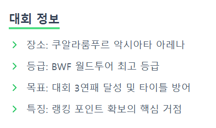 2. 말레이시아 오픈 대진 및 관전 포인트