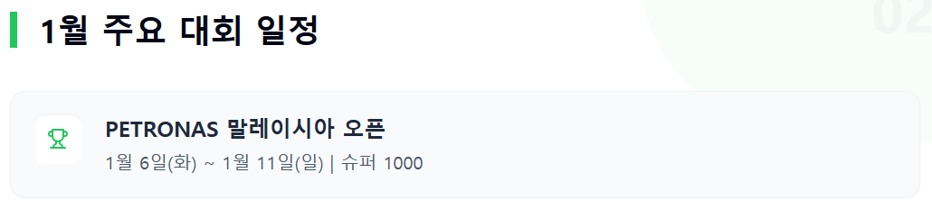 - 현재 진행 중: 말레이시아 오픈 (1/6 ~ 1/11)