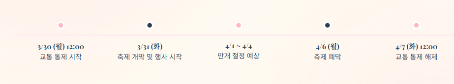 올해 축제는 벚꽃의 개화 상태와 시민들의 방문 편의를 고려하여 다음과 같이 운영됩니다.