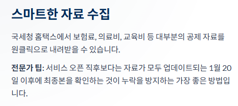 - 1월 15일(목): 연말정산 간소화 서비스 개통