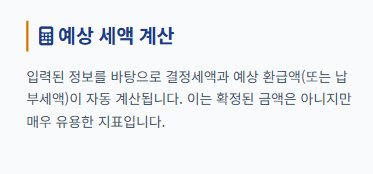 예상 환급액 또는 납부액을 사전에 파악하고 대비할 수 있도록 돕습니다.