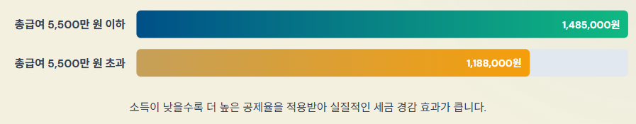| 구분 | 총급여 5,500만 원 이하 | 총급여 5,500만 원 초과 |