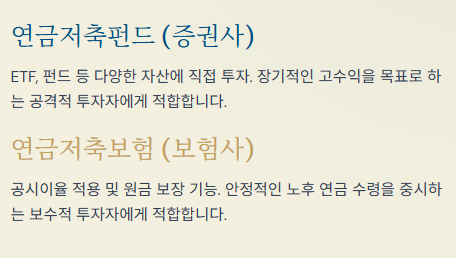 연금저축은 가입하는 금융기관에 따라 성격이 다르므로 본인의 투자 성향에 맞는 상품을 선택해야 합니다.