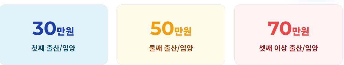 - 셋째 이상 출산/입양: 70만 원