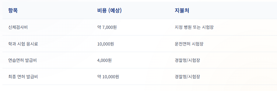 2026 운전면허 취득 비용 예상 요약 표
