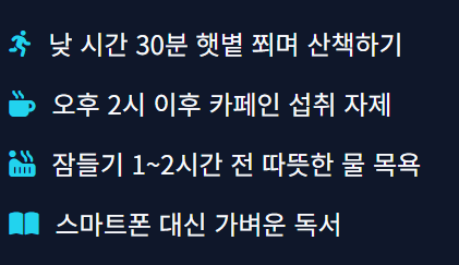 혹시 숙면을 돕는 구체적인 음식이나 스트레칭 방법이 궁금하신가요? 관련 정보를 추가로 정리해 드릴 수 있습니다.