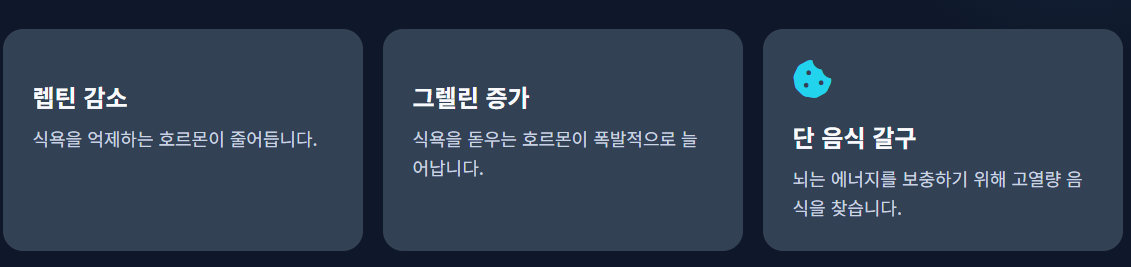 - 단 음식이나 자극적인 음식이 평소보다 더 강하게 당긴다.