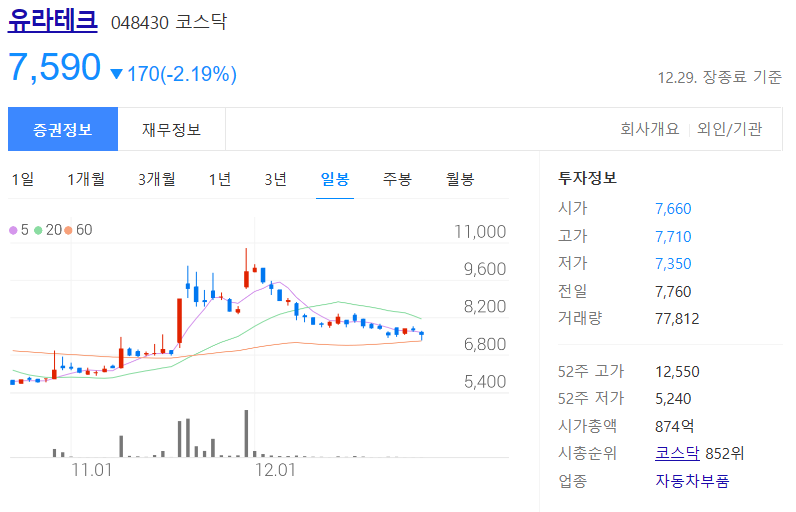 유라테크 관계사는 지금 무선충전기능을 탑재한 현대차 제네시스 전기차 'GV60'에 무선 충전 기능 구현에 필요한 일부 하드웨어를 제작중인것으로 알려진다. 주요 고객이 현대 / 기아자동차 등으로 아주 안정적이게 매출이 이루어지고있다.그 이후에 주가는 다시 한번 반응 올것이라 생각하고 관망하시길 권한다.