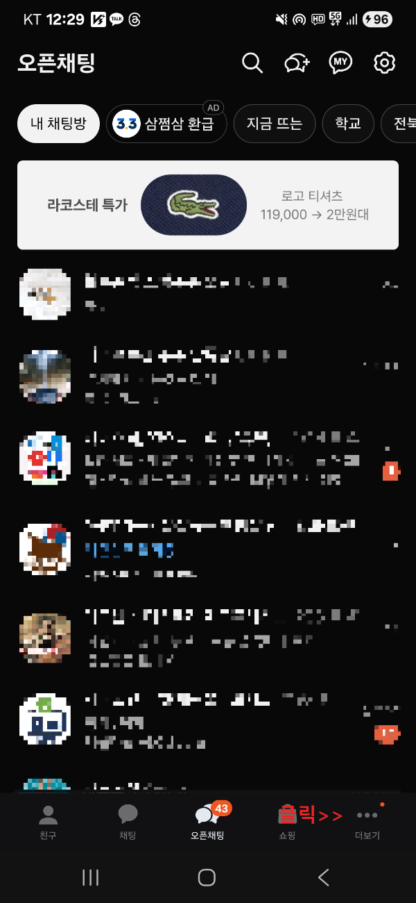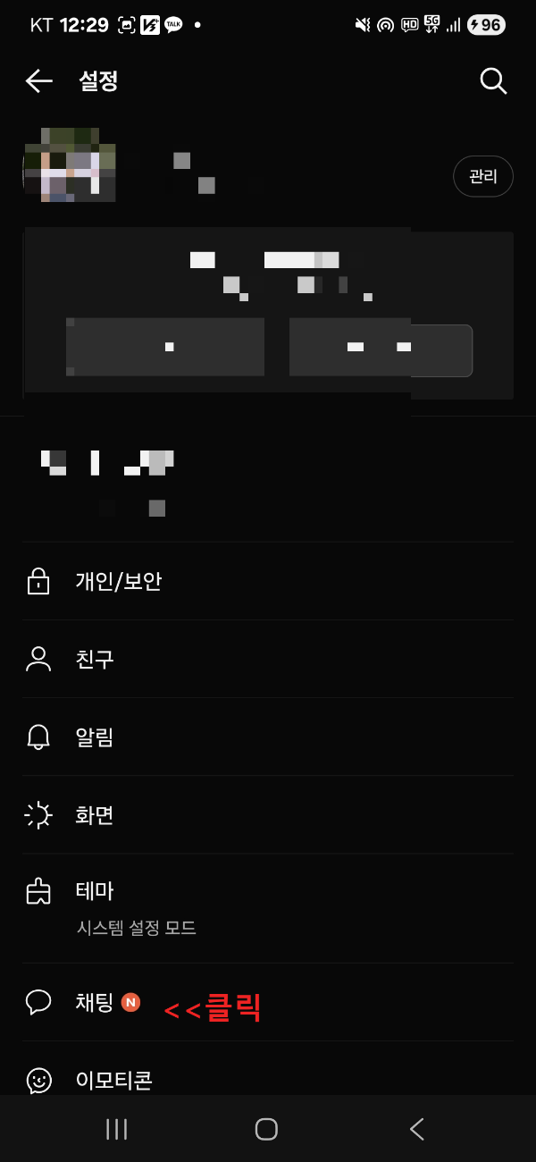 첫번째 사진에서 우측상단 톱니바퀴 클릭하고 두번째 사진에서 밑에 부분에 채팅이라고 적혀있는 부분 클릭!