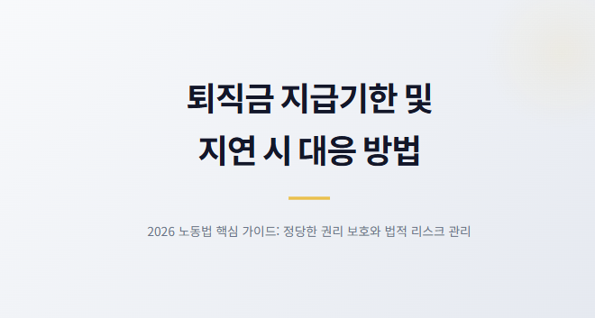 특히 2026년 현재 강화된 노동법 규정에 따라 지급기한 준수는 사업주의 법적 의무이자 근로자의 정당한 권리입니다. 본 포스팅에서는 퇴직금 지급기한의 원칙과 예외, 그리고 지연 시 발생하는 법적 책임에 대해 상세히 알아보겠습니다.