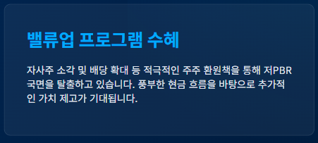 둘째, 기업 밸류업 프로그램에 따른 저PBR 탈피 가능성입니다. 현대차는 자사주 소각과 배당 확대 등 적극적인 주주 환원책을 발표하며 시장의 신뢰를 얻고 있습니다. 증권가에서는 현대차가 보유한 풍부한 현금 흐름을 바탕으로 추가적인 자사주 매입 및 소각이 이루어질 경우, 주가가 한 단계 더 도약할 것으로 전망하고 있습니다.