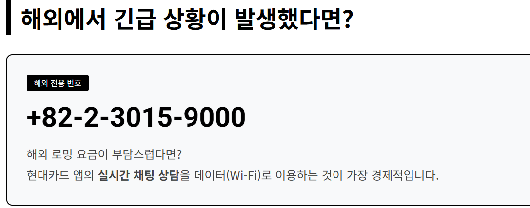 또한, 해외에서 현대카드 고객센터로 연결해야 할 경우에는 +82-2-3015-9000 번호를 이용하시면 됩니다. 해외 이용 시에는 로밍 요금이 발생할 수 있으므로, 가능하다면 현대카드 앱의 실시간 채팅 상담을 먼저 활용하시는 것을 추천드립니다.