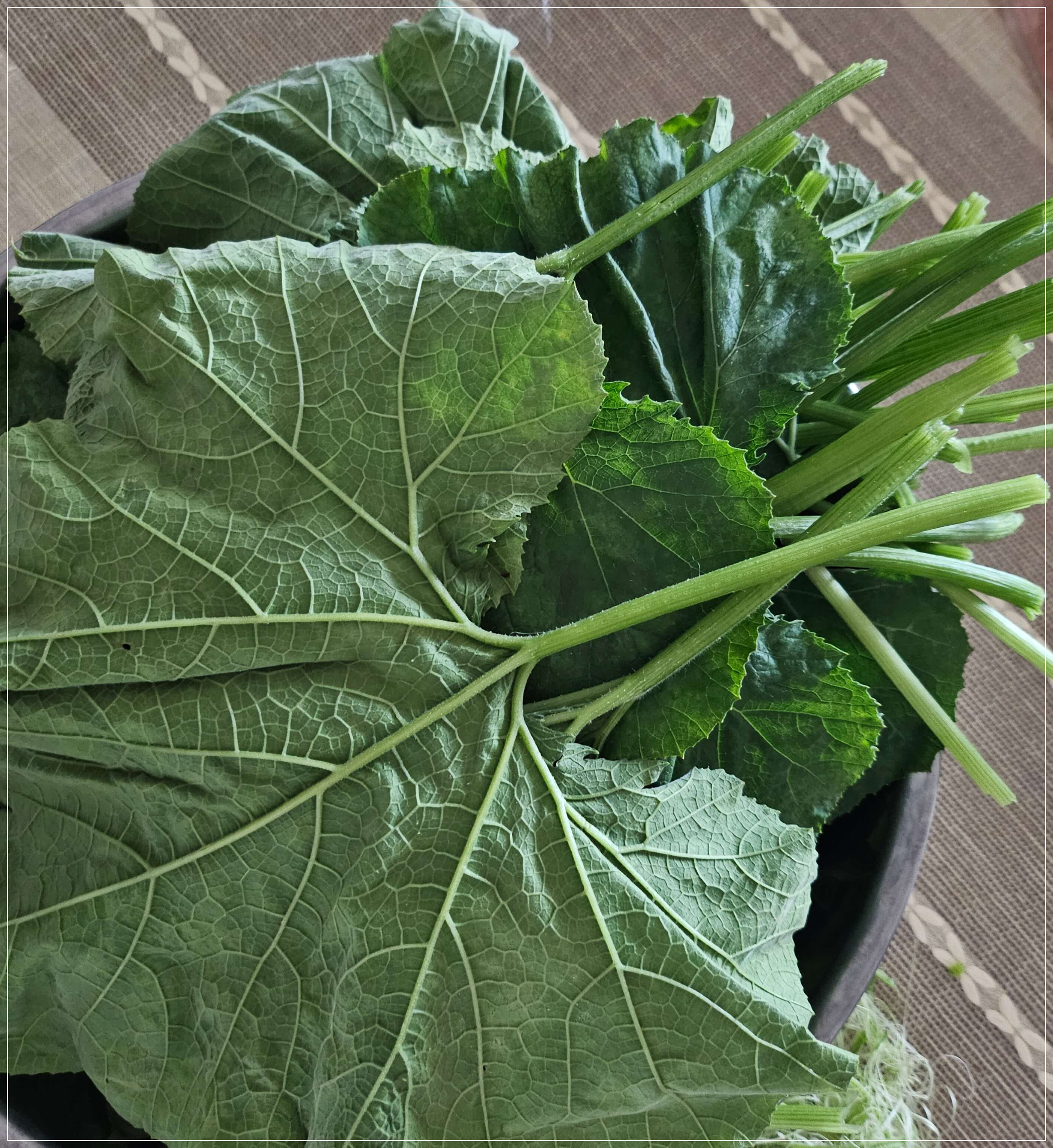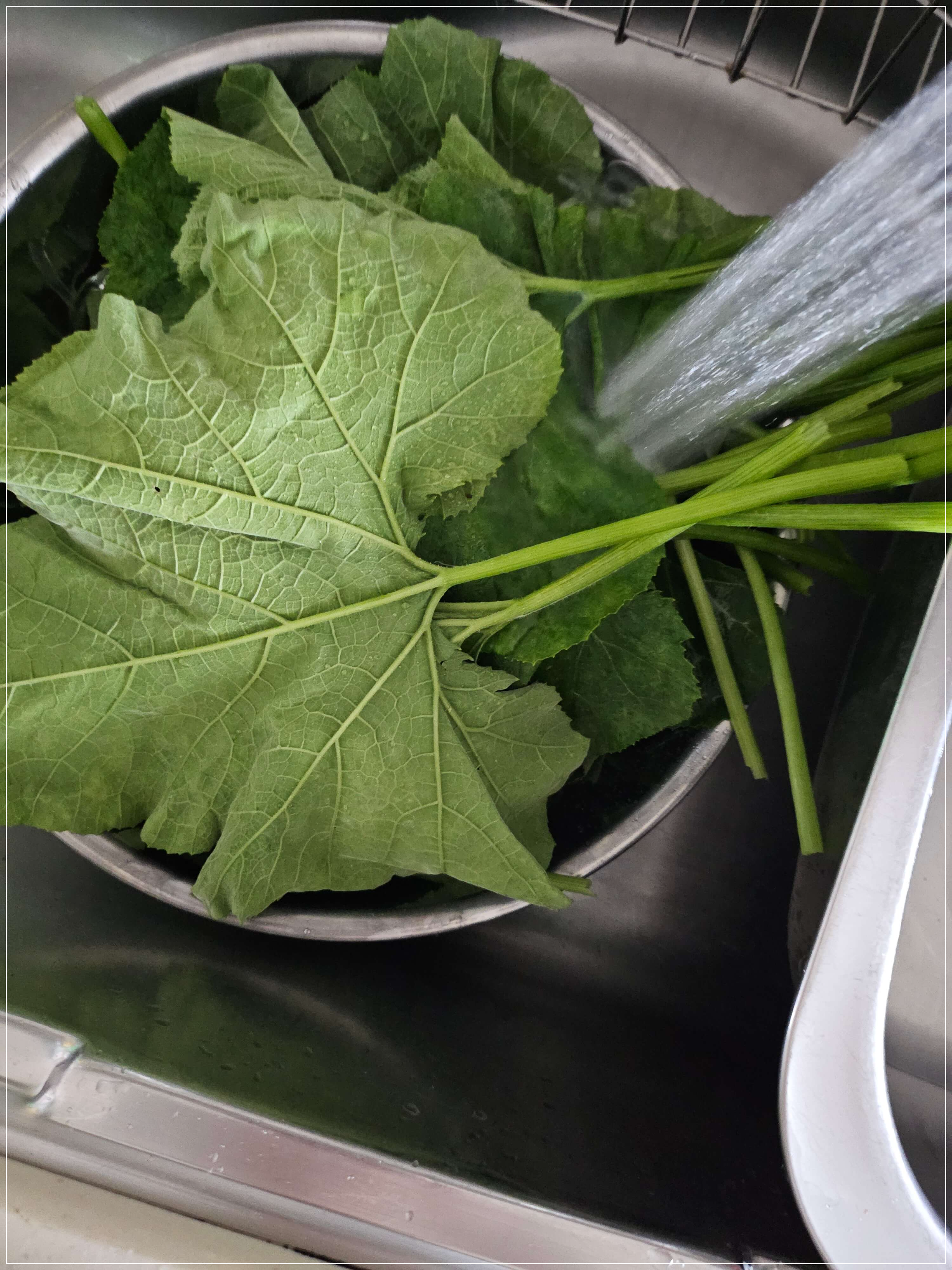 호박잎을 이물질을 제거하기 위해 깨끗이 씻어 준비합니다.