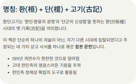 - 뜻: 환인·환웅·단군 시대의 옛 기록