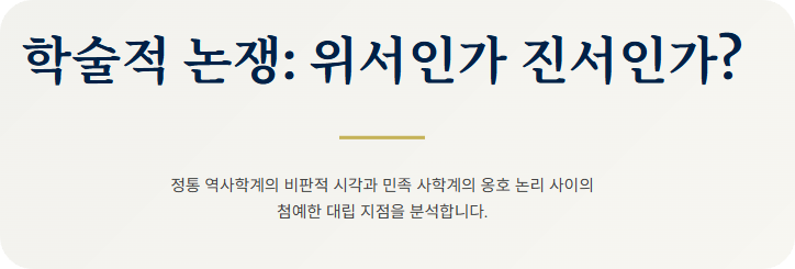 - 현재 상황: 주류 학계는 '위서'로 보나, 민족주의적 대중들에게는 여전히 강력한 영향력을 발휘 중