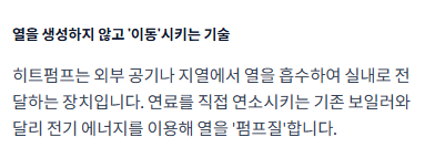 기존 가스보일러처럼 연료를 태우는 게 아니라 전기를 이용해 공기나 지열에서 에너지를 효율적으로 옮기기 때문에 탄소 배출이 적고 에너지 효율이 압도적입니다.