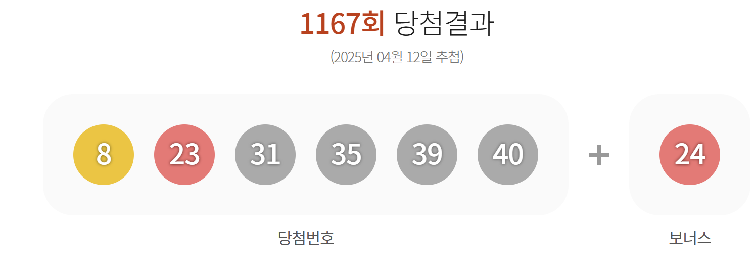 로또 1167회 당첨 번호를 확인해보세요!!