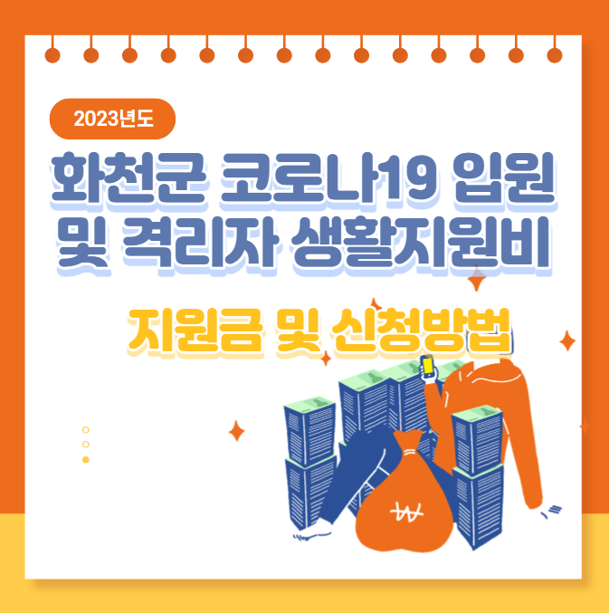 화천군 코로나19 입원 및 격리자 생활비지원은 강원도 화천군에서 실시하는 사업으로 격리 통지서를 받은 사람들 대상으로 1인 10만 원, 2인 이상 15만 원을 지원해 주는 제도입니다.