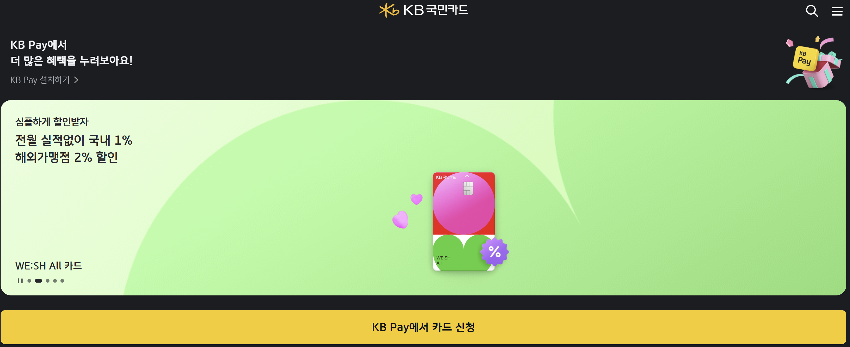 ✅ 평소 국민카드를 사용하는 고객이라면 국내 쇼핑몰 중심으로 최적화된 카드입니다.
