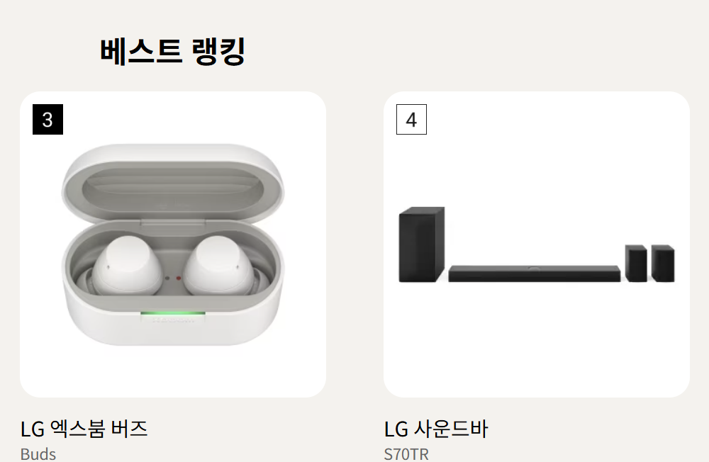 - 주요 제품: 오브제컬렉션 냉장고, 디오스, 세탁기, 건조기, 에어컨, 스타일러
