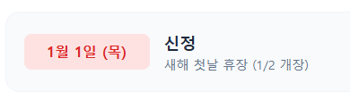 - 연말 일정: 12월 30일 폐장, 12월 31일 휴장