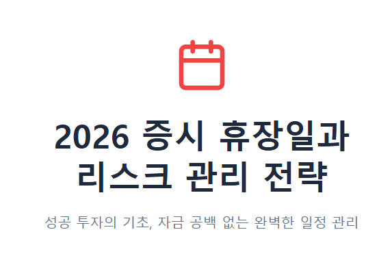 2026년 증시 휴장일 파악은 성공 투자를 위한 기초 체력을 기르는 일입니다.