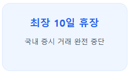 - 대응 팁: 휴장 전 결제 대금 확인, 장기 휴장 시 해외 주식 활용 및 리스크 분산