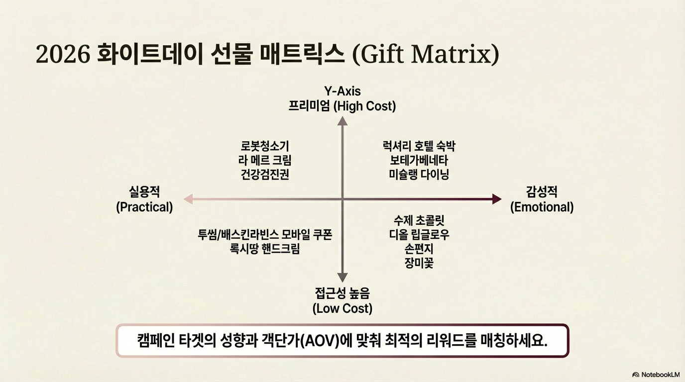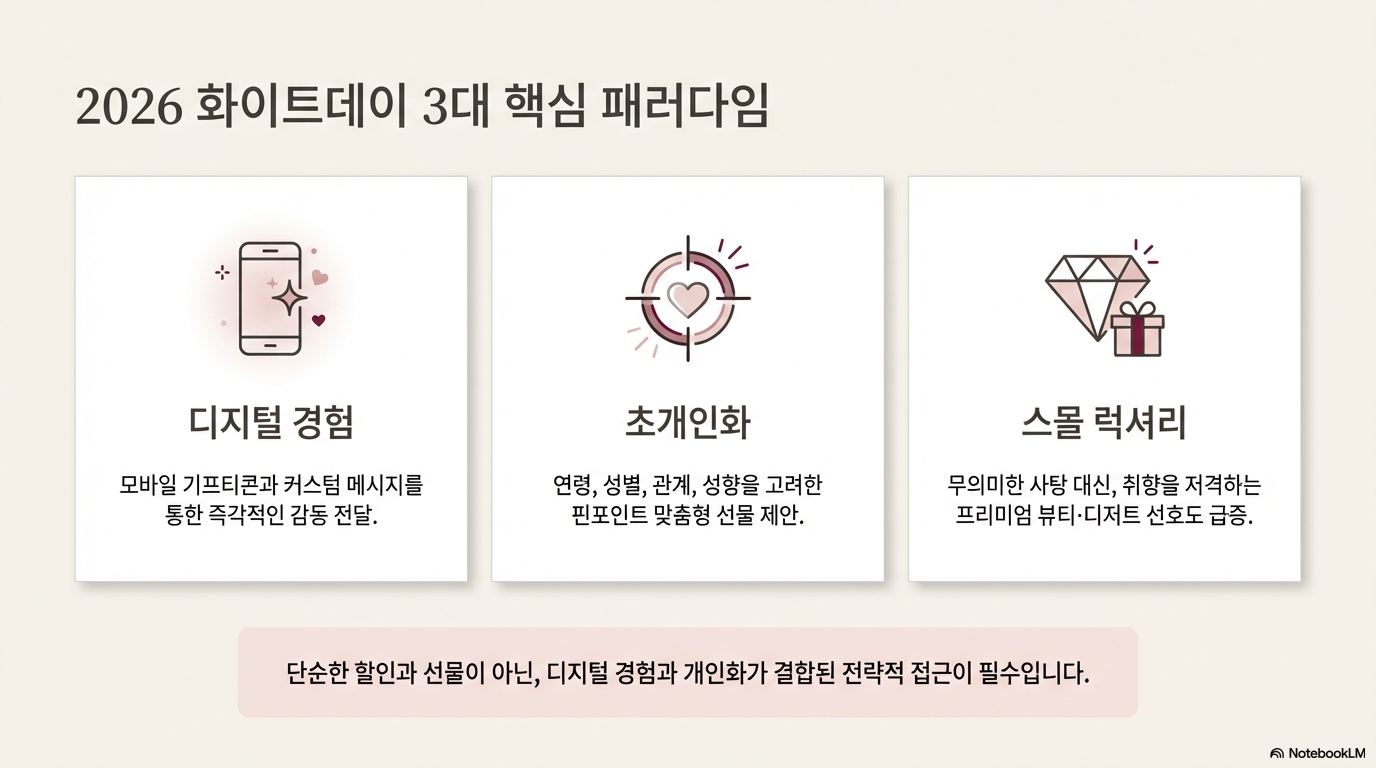 2026년 화이트데이의 본질은 '사탕'이라는 물건이 아니라, 상대의 일상을 얼마나 깊이 관찰하고 배려했는지를 보여주는 **'정교한 큐레이션'**에 있습니다.
