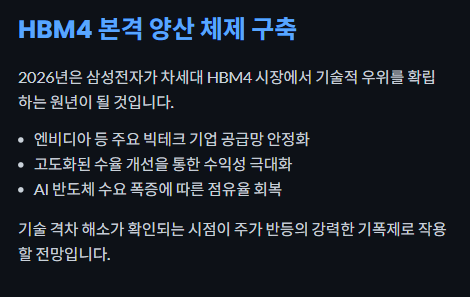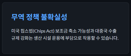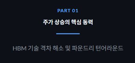 - 상승 요인: HBM 공급 정상화, 파운드리 수율 개선, AI 서버 수요 지속