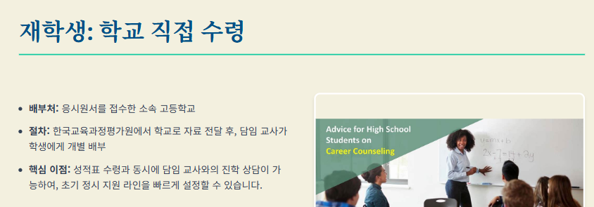 1. 재학생 수령 관점: 소속 학교를 통한 직접 수령