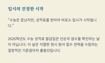 2026학년도 수능 성적표는 이미 배부되었으며, 수험생들은 이제 이 성적을 바탕으로 정시 지원 준비에 돌입해야 합니다.