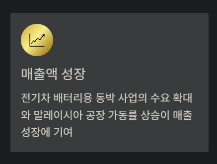 - 글로벌 경기 및 에너지 비용 변수: 전방산업 성장 둔화 및 국내 전기료 인상 등이 단기간 수익성에 부담으로 작용할 수 있어 투자 시 리스크 관리가 필요합니다.
