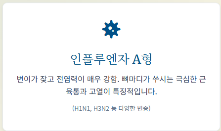 - A형 독감: 고열과 뼈마디가 쑤시는 듯한 극심한 근육통이 지배적입니다. 전염력이 매우 강하고 변이가 잦습니다.