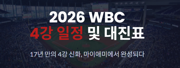 2026 월드베이스볼클래식(WBC)이 치열한 조별리그를 마치고 마침내 4강 진출을 향한 마지막 승부인 토너먼트 단계에 접어들었습니다. 특히 이번 대회에서 대한민국 대표팀은 극적으로 8강에 진출하여 팬들의 기대감을 높이고 있습니다. 4강전(준결승)은 야구의 성지라 불리는 미국 마이애미의 론디포 파크에서 펼쳐질 예정입니다.